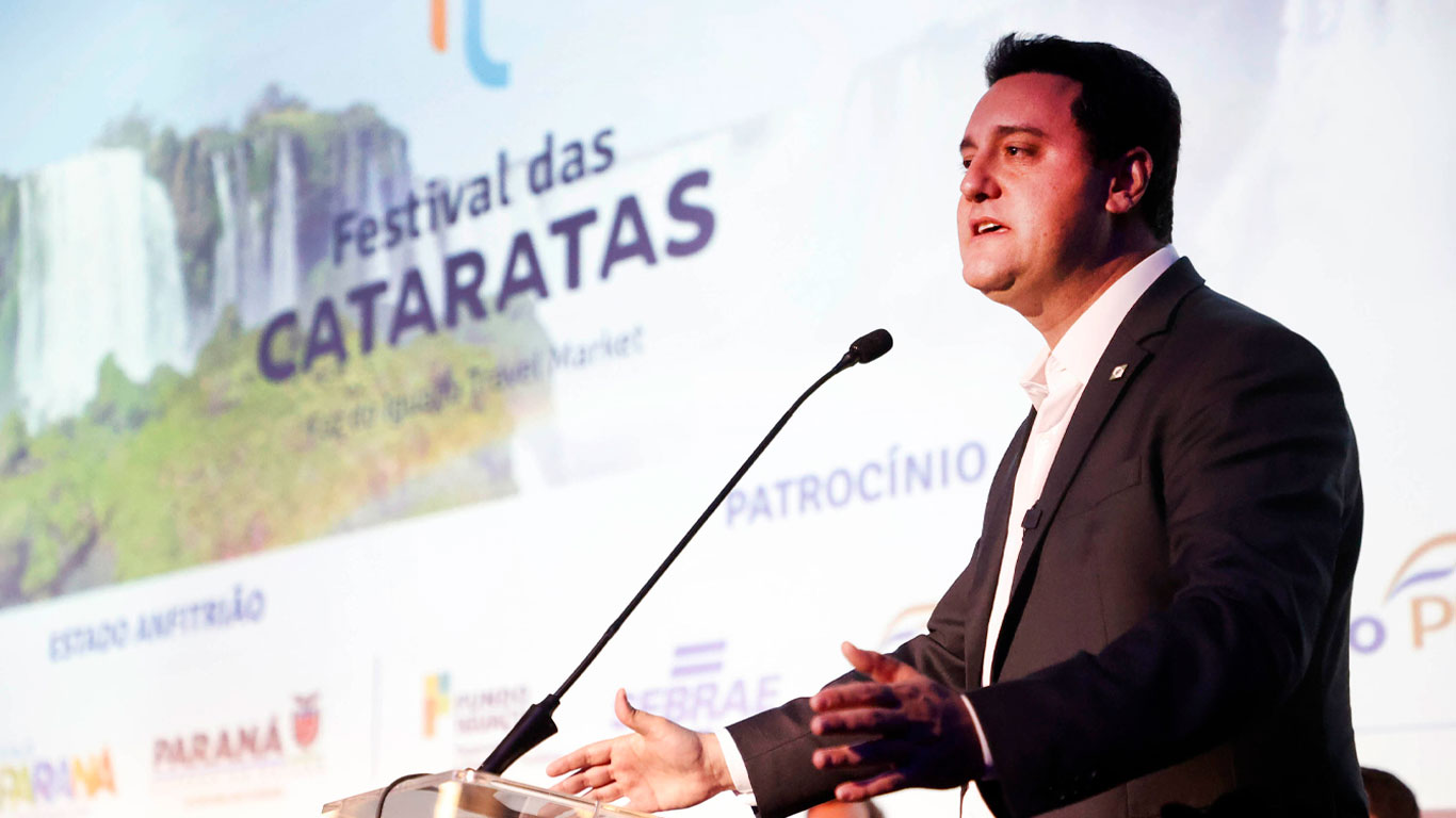 O governador Carlos Massa Ratinho Junior apresentou uma série de ações do Estado voltadas ao turismo paranaense e destacou o bom momento do setor durante a abertura do Festival das Cataratas, um dos maiores eventos do turismo nacional, com intensa programação de palestras, oficinas, workshops e rodadas de negócios. O evento iniciou nesta quarta-feira (31) e segue até a sexta-feira (2) em Foz do Iguaçu, no Oeste do Estado, com a expectativa de receber 8 mil visitantes.
