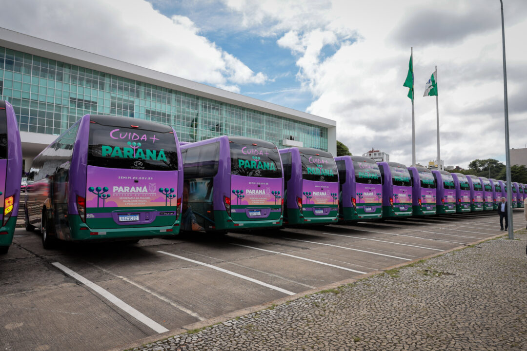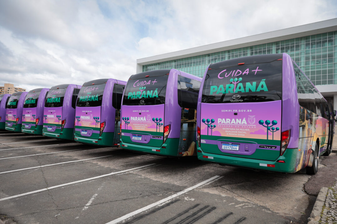 ÔNIBUS – A entrega dos primeiros 40 ônibus Cuida Mais Paraná complementa o pacote de investimentos. Os veículos são voltados ao transporte de grupos de pessoas idosas e fazem parte da política estadual que amplia a mobilidade, participação social e acesso a atividades de cultura, esporte, lazer e turismo. O investimento soma R$ 35,9 milhões. A distribuição dos ônibus considerou a certificação como Cidade Amiga da Pessoa Idosa pela Organização Mundial da Saúde e o percentual da população idosa de cada município.