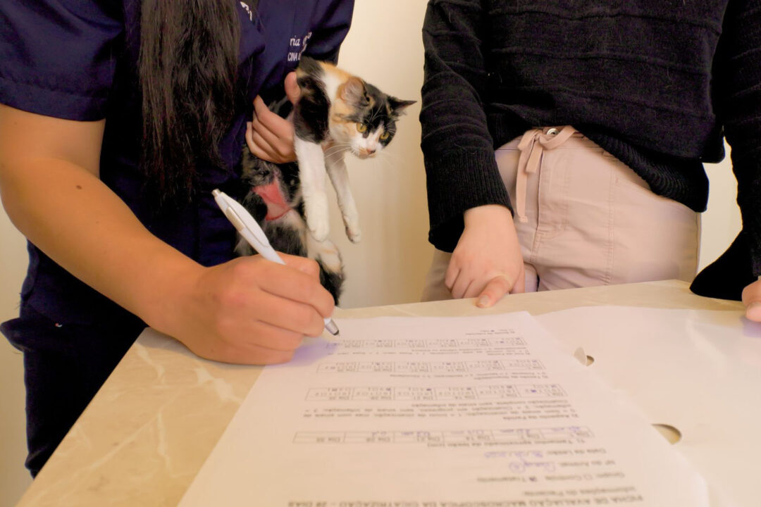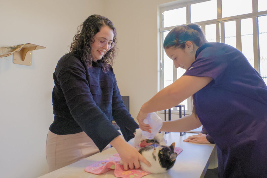 Um desses pets é a Pixy, gata de aproximadamente dois anos, que foi resgatada da rua com feridas nas pernas e barriga. A doutoranda Anna Claudia Capote acompanha a gatinha desde o primeiro dia de tratamento. “Foi difícil vê-la machucada nos primeiros dias, mas foi muito interessante ver a evolução, o fechamento da ferida. Agora ela está muito alegre e brinca com a gente”, conta.