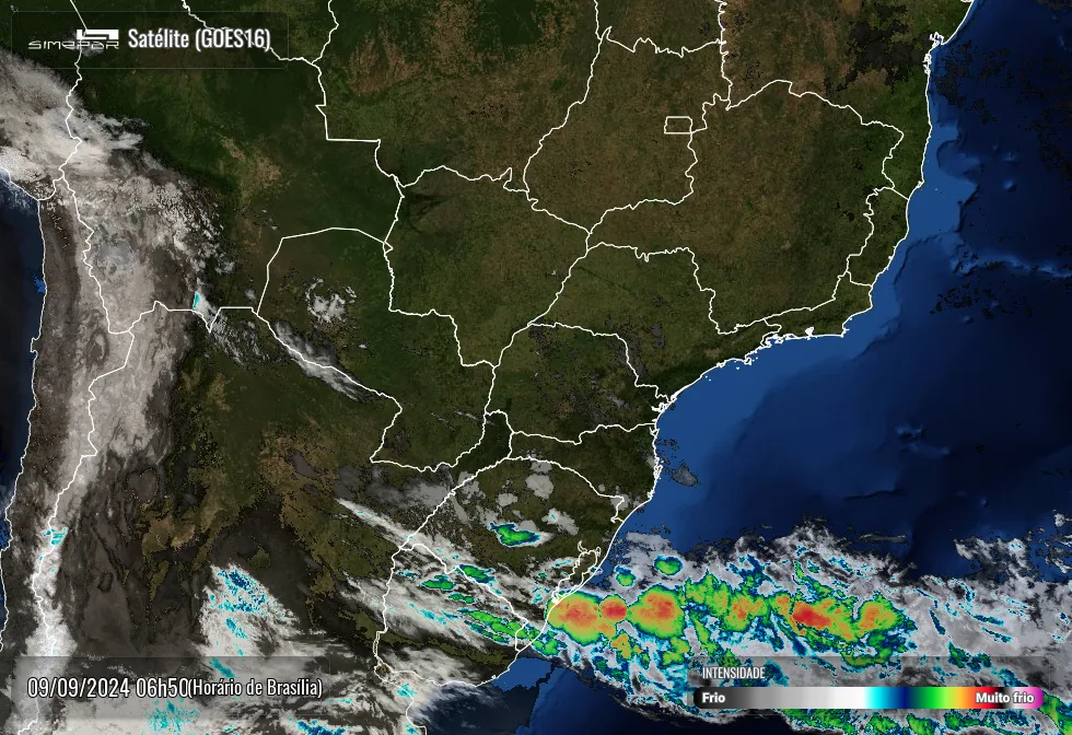 Além disso, o fluxo dos ventos, em altitude, mantém o transporte de material particulado e fumaça das queimadas da Amazônia, Pantanal, Bolívia e Paraguai em direção ao Sul do Brasil; isto é, mais um dia de ‘céu cinzento’ e/ou névoa seca em quase todas as regiões paranaenses.